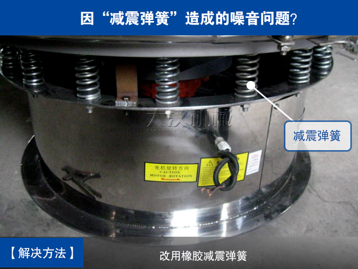 三次元振動(dòng)篩在篩分過程中如果采用鋼絲減震彈簧會發(fā)生彈簧與支座之間發(fā)生摩擦產(chǎn)生噪音,所以可改成橡膠材質(zhì)的減震彈簧。