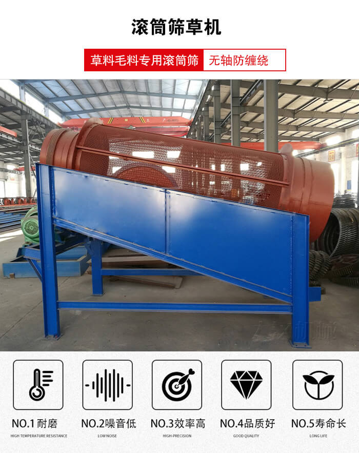 滾筒篩草機(jī)是根據(jù)草料毛料專用滾筒篩,有大型和小型兩種。繼承了單層滾動(dòng)篩的良好篩分優(yōu)勢(shì),內(nèi)層棒條篩網(wǎng),外層金屬細(xì)密編織網(wǎng),解決了大塊物料對(duì)滾筒篩網(wǎng)的壓力。廣泛應(yīng)用于篩草行業(yè)的喜愛(ài)。